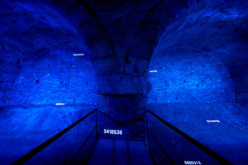 Mattia Pajé installation in the Ponte Sanguinario, Spoleto, curated by Rendina.