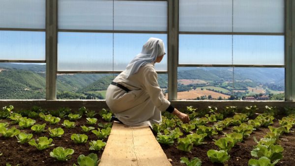 Initially, Julie had researched the histories of female saints in the Umbrian region and became fascinated by the story of Santa Rita (1381-1457), who was from nearby Cascia. Santa Rita is the patron saint of ‘impossible causes’. After repeated visits to the Santuario di Santa Rita da Cascia, Julie gradually became acquainted with the nuns who live there today. In its history, Julie was the first person to be allowed to film in the cloisters. She documented the day-to-day rituals and activities of the nuns.