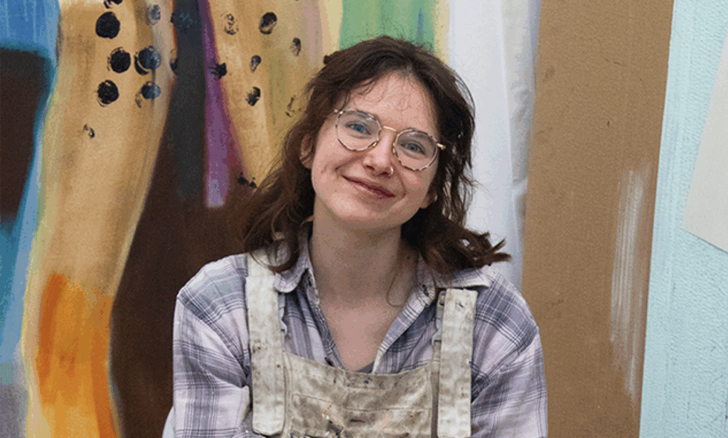 She was awarded the Ivan Juritz Prize (Visual Art) for her project Pair in her Face (2025), a wearable, nude self-portrait monoprinted onto lantern paper and performed to parody traditions of submissive female representation. Recently, her focus has shifted toward the relationship between body and its surrounding environment, combining painting, frottage, and printmaking to generate bodily responses to urban space. During the residency in Spoleto, she plans to explore the landscape through drawing, writing, and gel plate printing.